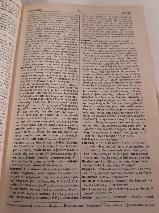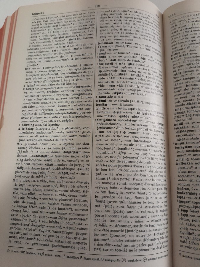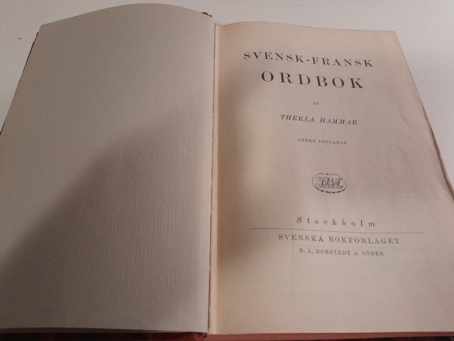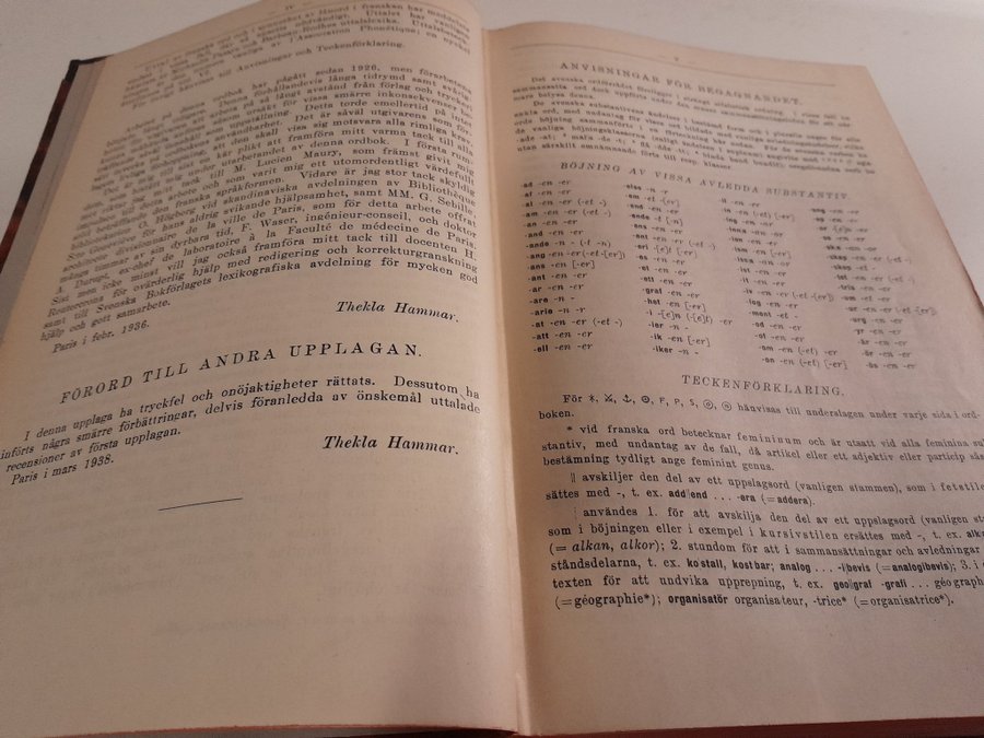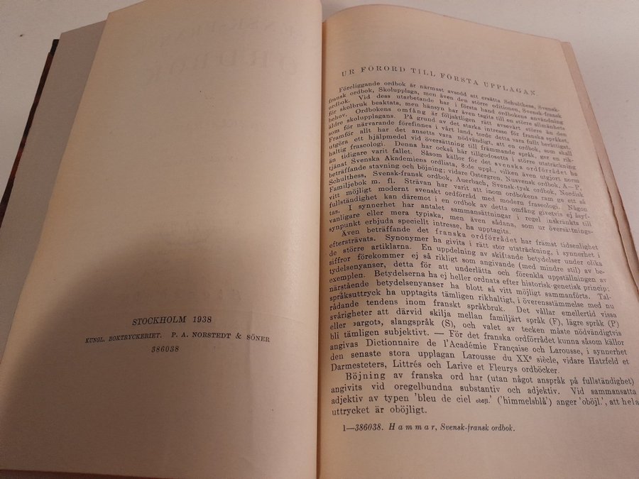 Ordbok svenska-franska (utgiven 1938) på 1082 sidor