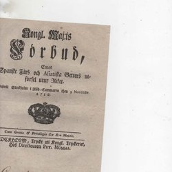 En skrift tryckt i Stockholm 1748. Den innehåller kungörelser och tillkännagivanden. 4SID
