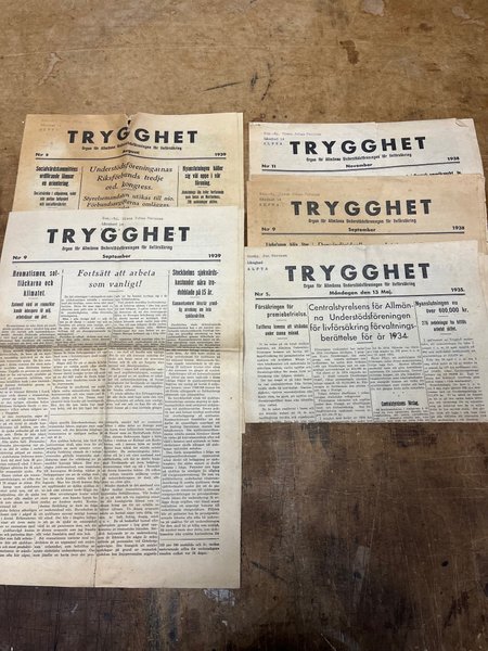 Ett antal tidningar från Trygghet, organ för Allmänna Understödsföreningen för livförsäkring. Årgångarna är 1935, 1938 och 1939.