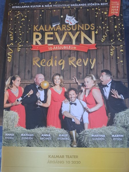 Program från Kalmarsundsrevyn "Redig Revy" från 2020. Föreställningen presenterades av Rydellarna Kultur & Nöje och hölls på Kalmar Teater. Revyn firade 10-årsjubileum