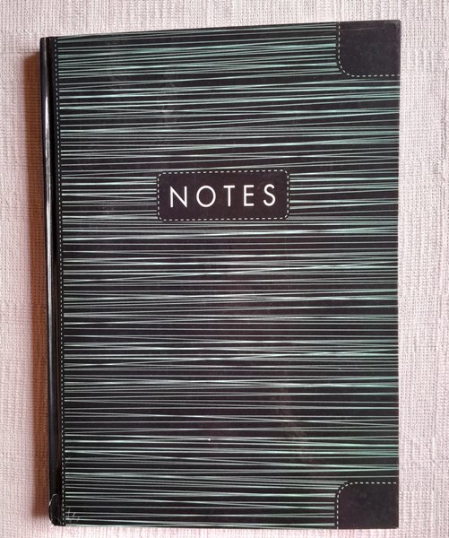 Anteckningsbok a4-format, linjerade sidor.
