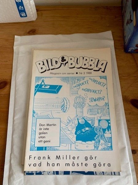 oläst men med något missfärgat omslag i kanterna. Tidningen Bild & Bubbla Nr 2 från 1988. Innehåller artiklar om Don Martin och Frank Miller.