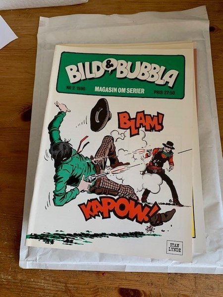 oläst men omslaget har lite missfärgning i kanterna. Tidningen Bild & Bubbla Nr 2 från 1990, "MAGASIN OM SERIER". Priset är 27:50.