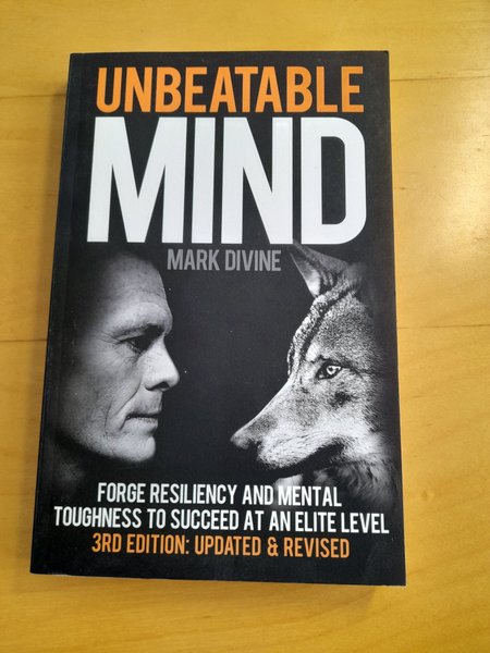 Boken "Unbeatable Mind" av Mark Divine, 3:e upplagan: uppdaterad och reviderad. Denna bok fokuserar på att bygga motståndskraft och mental tuffhet för att nå framgång på elitnivå.