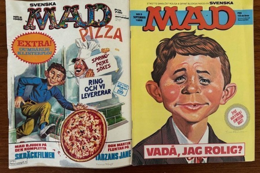 Två nummer av Svenska MAD tidningen: Nr 2 från 1982 (MAD Pizza) och Nr 9 från September 1986. Perfekt för samlare!