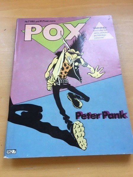 Oläst men inte NM. Tidningen POX, nummer 7 från 1985, med "Peter Pank" på omslaget. Innehåller en varningstext: "VARNING! Innehållet kan verka stötande på känsliga personer".