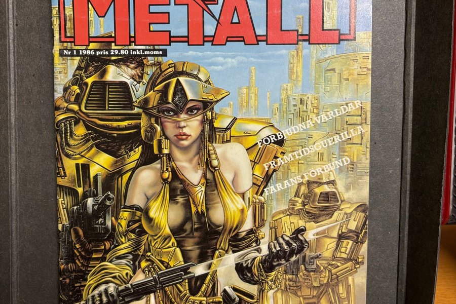 Tidningen Tung Metall, nummer 1 från 1986. Innehåller "Förbjudna Världar", "Framtidsguerilla" och "Farans Förbund".