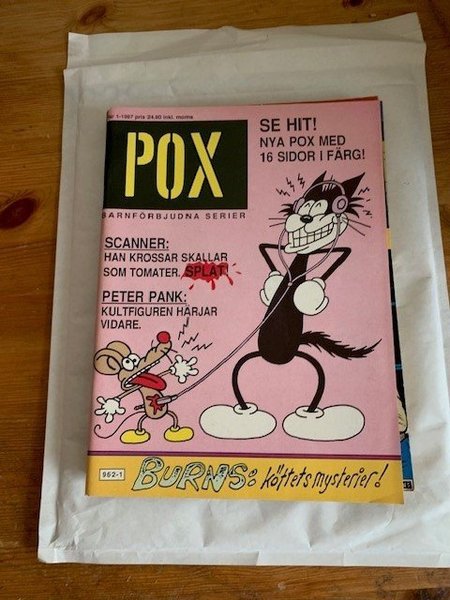 oläst men ej i nyskick. POX tidning med 16 sidor i färg. Innehåller serier som Scanner, Peter Pank och Burns: Köttets mysterier.