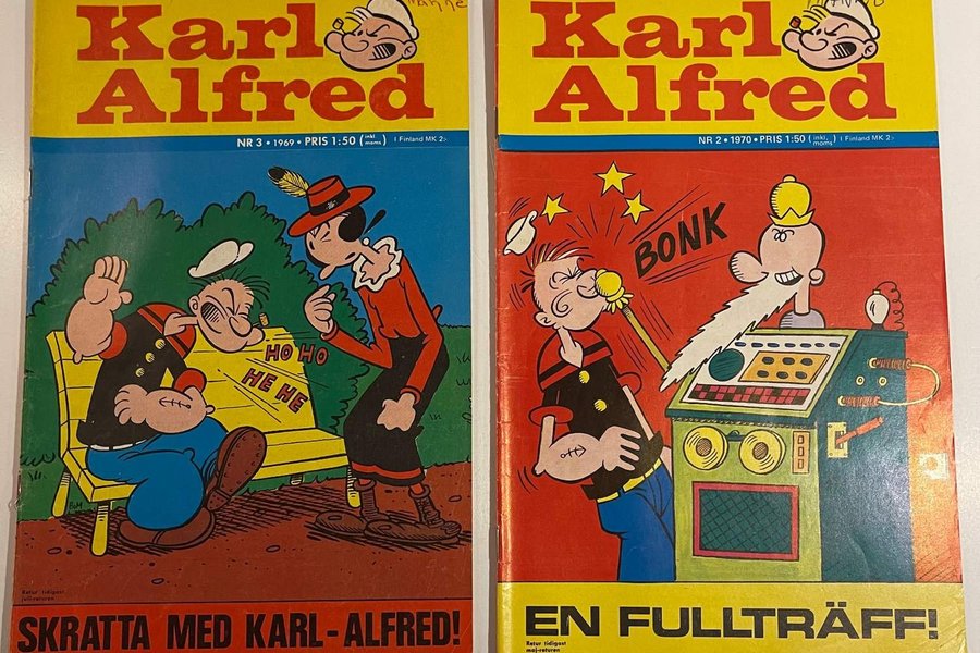 Två nummer av tidningen Karl-Alfred.