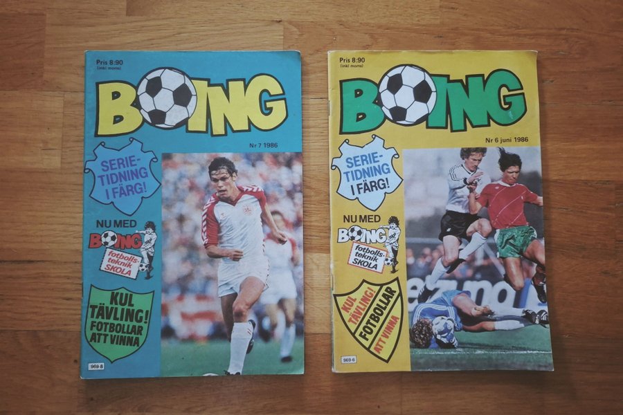 BOING nr 7 1986 & nr 6 från 1986. serietidning i färg med fotbollsteknikskola och tävlingar.