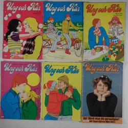 Fem nummer av tidningen Ung och Kär från 1975. Dessa nummer är: Nr 1, Nr 3, Nr 8, Nr 9 och Nr 11.
