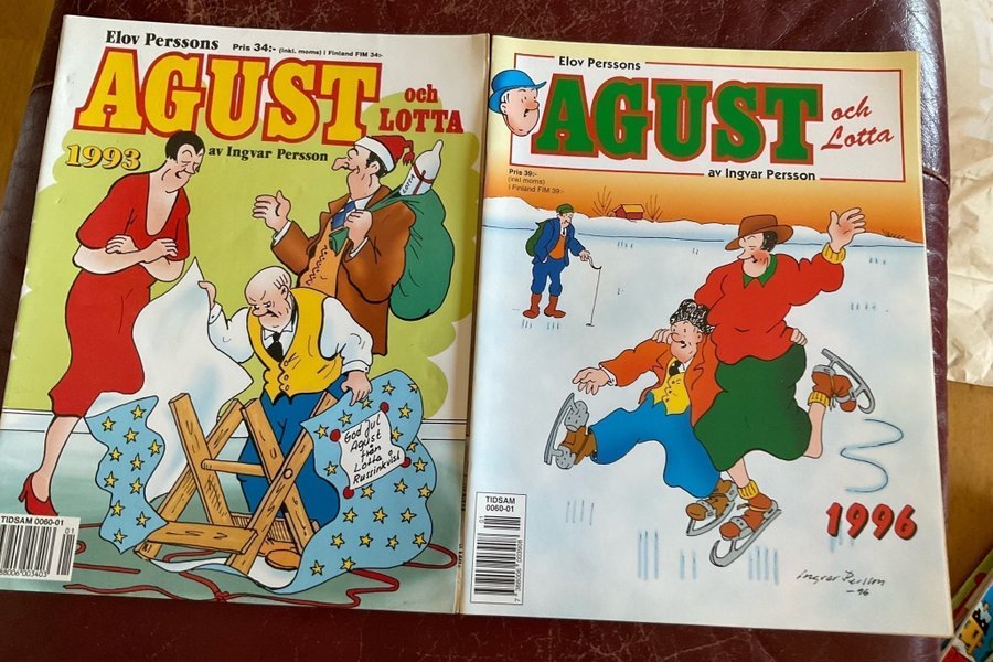 Två nummer av julalbum Agust och Lotta av Ingvar Persson. nummer från 1993 och 1996. Samfraktar