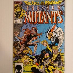 Cover pencils by Bret Blevins. Fang and Claw!, script by Louise Simonson, pencils by Bret Blevins, inks by Terry Austin; The New Mutants are watched by the Animator, who created a host of mutated animals, and who works with Cameron Hodge and the Right; Sunspot and Warlock return to the mansion; the Ani-Mator captures the New Mutants, and confronts Bird Brain, his creation. Fall of the Mutants crossover with Uncanny X-Men #225-#227 and X-Factor #24-#26.