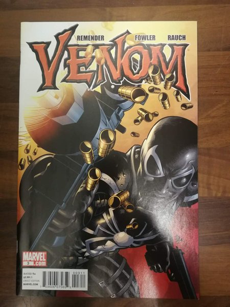 Cover by MIKE DEODATO. Written by RICK REMENDER. Art by TOM FOWLER. Flash has lost control of the symbiote! Jack-O'-Lantern and his enigmatic boss are poised to flood the black market with?weaponized Antarctic Vibranium! With his military handler's finger on the self-destruct button, can Flash overcome his temper to regain control over Venom and save the world from descending into chaos before he's blown to pieces?The product picture is a photo of the actual comic so please study it carefully.