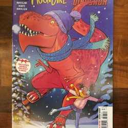 Written by Brandon Montclare. Art and Cover by Natacha Bustos. IT'S THE END OF AN ERA AS 'GIRL-MOON' REACHES ITS STUNNING CONCLUSION! Lunella and Devil's adventure took them across space… now they're going through time! Hey, didn't Devil used to have a different partner? Devil makes the hardest choice of all… 28