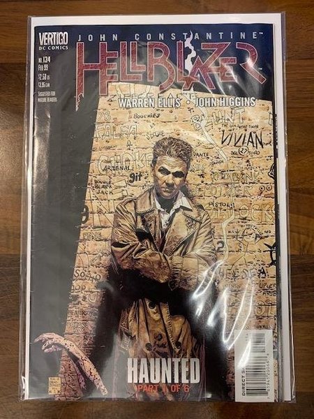 Painted cover art by Tim Bradstreet. Haunted Part One starring John Constantine, Watford, Clarice, and Albert, script by Warren Ellis, art by John Higgins; John begins investigating the murder of his ex-girlfriend Isabel. Suggested for Mature Readers. New Format.The product picture is a photo of the actual comic so please study it carefully.