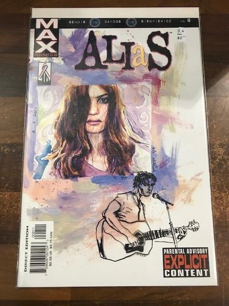 Written by Brian Michael Bendis. Art by Michael Gaydos and Bill Sienkiewicz. Cover by David Mack. Jessica finds the missing person she's been trailing? but is he a persecuted ex-superhero-sidekick, or just a lunatic?! 32 pages, FC. Contains explicit content. Recommended for adult readers.