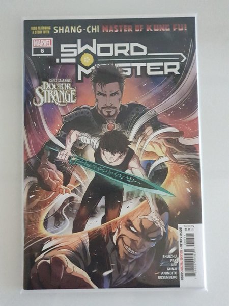 Written by Shuizhu, Greg Pak and Fonda Lee. Art by Gunji and Ario Anindito. Cover by Gunji. STRANGE DAYS! When you run around the Marvel Universe with a big magic sword, you have to expect you'll eventually get a visit from the Sorcerer Supreme. It's time for tea and terror with Doctor Strange! Meanwhile, in our second story, co-written by Greg Pak and World Fantasy Award winner Fonda Lee, Shang-Chi and Lin Lie learn the true secrets of the dragon son of Ares! 36 pages, full color.