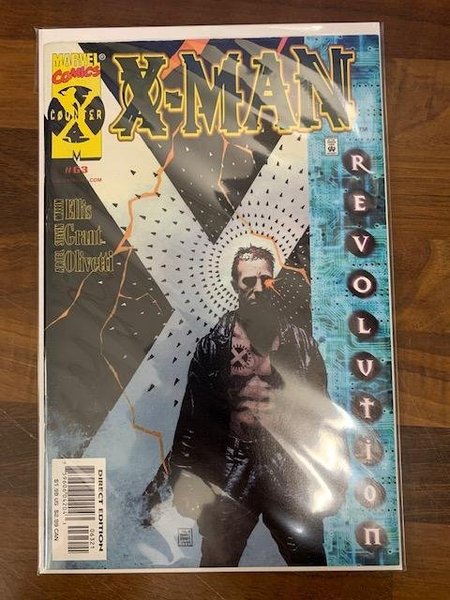 Black Cover - Cover by Tim Bradstreet. No Direction Home: Part 1 of 4 - "Revolution!" Story by Warren Ellis and Steve Grant. Art by Ariel Olivetti. Warren Ellis takes the reins and sets up a bold new direction for Nate Grey. A mysterious group of financiers, artists and technologists in New York City are being whittled down, one by one, by something strange and terrible in the dark. Something that recognizes them... that knows they're mutants. Something there is no escape from... and that they don't know how to stop. In olden times, when a menace threatened a tribe, the group would go outside their circle for help, to the man who lived outside their society: the shaman. Now, there is a wolf at the door of reality. And only one man has the power, and the distance from the world, to see it clearly. That man is Nate Grey, the X-Man, mutant shaman for the 21st Century! Includes the 8-page insert Fast Lane: Part 3 of 4 - starring Spider-Man, the X-Men, Fantastic Four and the Avengers.The product picture is a photo of the actual comic so please study it carefully.