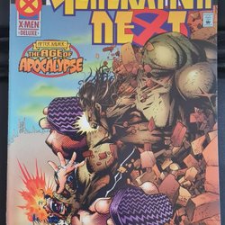 Written by Scott Lobdell. Art and cover by Chris Bachalo and Mark Buckingham. Hither Comes the Sugar Man!; Generation Next prepares to invade the Portland Core mine to rescue Illyana Rasputin from a life of slavery to Apocalypse; Husk and Vincente succeed in killing and impersonating the mine's foreman, Quietus, while the rest of the team waits in the wings to strike. Text piece about the Age of Apocalypse. 36 pages, full color.