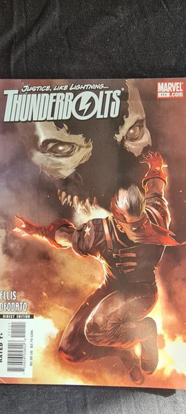 Written by WARREN ELLIS. Penciled by MIKE DEODATO. Cover by MARKO DJURDJEVIC. Variant cover by ARIEL OLIVETTI Faith in Monsters, Part 2 of 6. The new Thunderbolts embark on a manhunt for Captain America's old sidekick, Jack Flag. Can Jack survive against the raw power of Venom and the cunning of Moonstone? And what has he done to deserve being hunted down? Plus, discover how Songbird ended up a low-ranking member on the team she used to run. 32 PGS./Rated T+