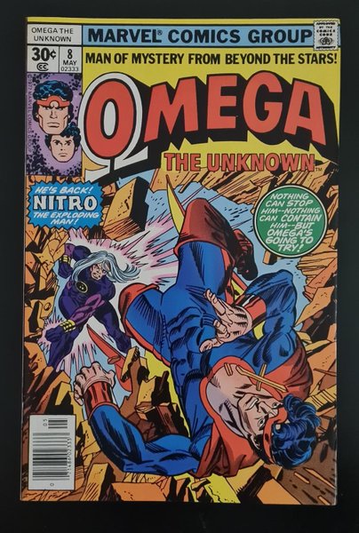 Cover by Gil Kane and Frank Giacoia. A Blast From the Past, script by Roger Stern, art by Lee Elias and Jim Mooney; Omega the Unknown battles Nitro—nothing can stop him. This is the second appearance of Nitro, the man responsible for Captain Marvel's death. Hostess ad, Captain America and The Sore Sir's Apprentices. 36 pgs., full color.
