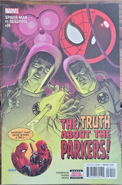 Written by Robbie Thompson. Art by Matt Horak. Cover by Dave Johnson. The Master Matrix has been unearthed as well as all the secrets of S.H.I.E.L.D.'s LMD program… At the heart of this program were MARY AND RICHARD PARKER, A.K.A., The Amazing Spider-Parents. Just when you thought you could trust that two people were without blemish, Deadpool somehow ruins them, too.