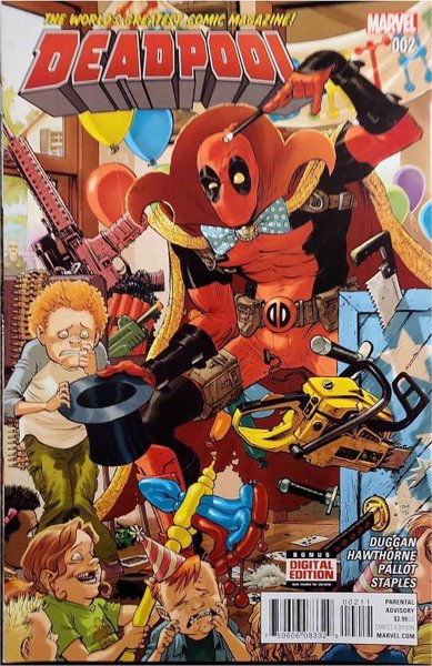 Written by Gerry Duggan. Art by Mike Hawthorne. Cover by Tony Moore. He's annoying. He's dangerous. He smells terrible. But the public love him. That's right-the Merc with the Mouth may make money for missions of murky morality...but he's become the most popular hero in the world for it. Eat that, Spidey! The world belongs to...DEADPOOL.