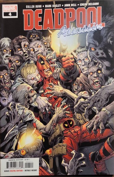 Written by Cullen Bunn. Art and Cover by Mark Bagley. Deadpool isn't usually known for his attention to detail and promptness, but he's CLEANING UP in the mercenary-for-hire biz. And since the Regeneratin' Degenerate's proven elusive of the Assassins Guild's efforts to stop him, in this issue they'll hit him where it hurts… His groin. His friends.