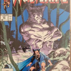 The Gehenna Stone Affair: Part 4 of 6 - "Flying Wolves!" Written by Peter David. Art by John Buscema and Bill Sienkiewicz. Cover by Kevin Nowlan. Back in Mandripoor everyone is double-crossing each other to get their greedy little hands on a piece of the Gehenna Stone. Meanwhile, Wolverine fights for his life against the supernatural power of more vampires.