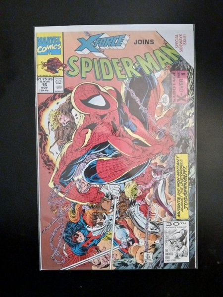 Direct Edition. X-Over: Part 1 of 2. "Sabotage!" Guest-starring X-Force. Story, art and cover by Todd McFarlane. Superstar artist Todd McFarlane's spectacular run on Spider-Man comes to an end with a cataclysmic showdown that pits Spidey and the mutant heroes of X-Force against the nigh unstoppable Juggernaut! Story concludes in X-Force (1991-2002 1st Series) #4. NOTE: This unique issue is told in widescreen format (horizontal) to maximize the action. After this issue Todd McFarlane left Marvel and went on to form Image Comics with other superstar artists (Jim Lee, Marc Silvestri, and Erik Larsen to name a few). There he created Spawn, one the most successful creator owned characters in the history of the medium. Spawn has gone on to inspire spin-offs, cartoons, a movie, and one of the most successful toy lines of all time. - Odinson, Lone Star Archivist