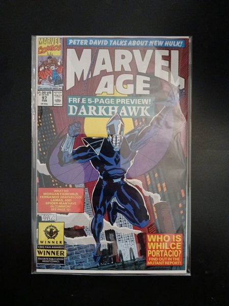 'Pro File' - Peter David; interview with Whilce Portacio; article on the new Hulk, with comments from Peter David; 2-page strip by Fred Hembeck; 5-page Darkhawk preview; Darkhawk cover by Mike Manley.