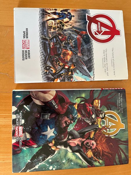 Två böcker i "Avengers"-serien av Hickman. Vol 1 och vol 2. Säljes tillsammans för 300kr