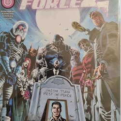 Written by Matthew Rosenberg. Art and Cover by Eddy Barrows, Eber Ferreira. Are we the baddies? After the shocking (but not really) betrayal by Mr. Bloom, the new Task Force Z are public enemy number one. All of Gotham is hunting for them. They are out of money, out of friends, and out of Lazarus Resin. But now they will have to face their most dangerous foe yet—and its one of their own! 32 pages, full color. Rated T+