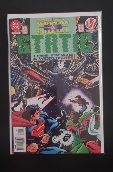 Part 14 of 'Worlds Collide,' the 14-part DC/MILESTONE crossover event, concluded from Blood Syndicate (1993) #17 in this extra-sized issue. The cosmic entity Rift may destroy two worlds if the heroes of Dakota and Metropolis fail. But even if the heroes prevail, one world seems certain to be destroyed! Written by Dwayne McDuffie, with art by Denys Cowan and Prentis Rollins. Cover by John Paul Leon and Shawn Martinbrough.