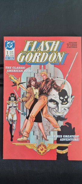 Ever since he first appeared on newspaper comic strip pages in January of 1934, Alex Raymond's classic science fiction hero Flash Gordon has travelled the universe in search of adventure. Now his travels have brought him to DC Comics for an all-new, 9-issue New Format maxi-series. Along with his intrepid companions, Dale Arden and the brilliant Dr. Zarkov, Flash Gordon is off on his most deadly mission...an epic science fiction adventure in the boldest and best tradition of the genre. The deadly menace of Ming the Merciless, the cruel, murderous master of the alien world Mongo, casts his evil shadow across the universe. And only one man can halt the spread of his incomparable lust for dominance. That one man is Flash Gordon. The 9-issue mini-series is written and pencilled by Flash Gordon enthusiast Dan Jurgens and inked by Bruce Patterson. Jurgens and Patterson also provided the cover for the first issue