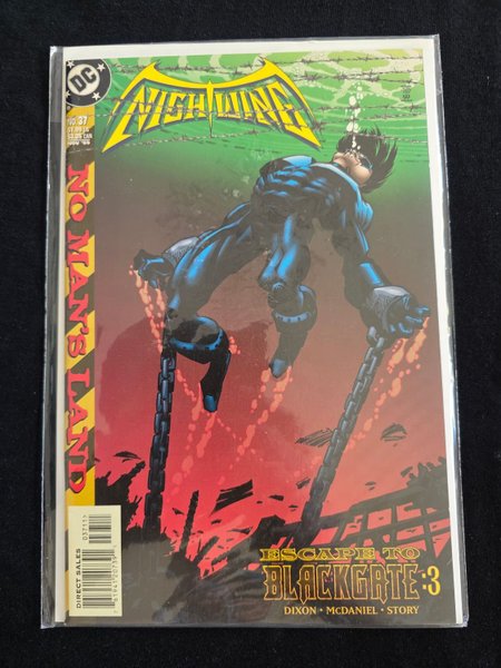WRITTEN BY CHUCK DIXON; ART AND COVER BY SCOTT MCDANIEL AND KARL STORY. The pulse-pounding conclusion to Nightwing's first "No Man's Land" adventure! With Blackgate Prison flooding and dozens of murderous villains at his throat, Nightwing must complete the task of taking the penitentary back from Lock-Up and his trustees. Even if he succeeds, he may be of no more use to Batman after what he's suffered at the hands of Blackgate's worst. FC, 32 PG." Batman No Man's Land