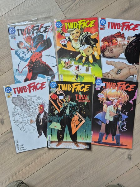 Sæt med 6 tegneserier fra DC Comics med titlen "Two-Face". Inkluderer udgaverne #1, #2, #3, #4, #5 og #6.
