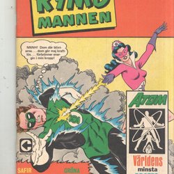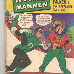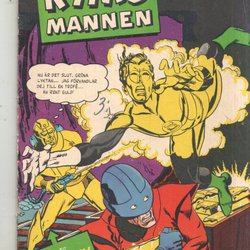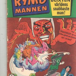 RYMD MANNEN Nr 2 från 1964. Tidningen innehåller "MED HÖKEN I FYRA SPÄNNANDE ÄVENTYR!", "JÄTTEN SOM SOV I TUSEN ÅR!", "DEN OSYNLIGE dr DUMAR!", "GREVEN I DÖDSDALEN", och "RAJANS RING". Baksidan har reklam för "LÄDERLAPPEN" och "MODERNA VAPEN".