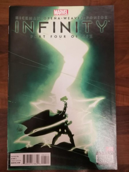 Cover by Adam Kubert (W) Jonathan Hickman (A) Jerome Opena, Dustin Weaver Negotiating the fall of worlds. The Illuminati versus Thanos. Thor, God of War.The product picture is a photo of the actual comic so please study it carefully.