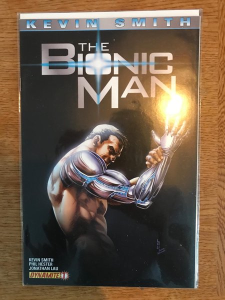 Limited 1 in 20 Variant Cover by Jonathan Lau (W) Kevin Smith, Phil Hester (A) Jonathan Lau Steve Austin is back and acclaimed film maker Kevin Smith unleashes his high octane vision in this new series from Dynamite. Featuring 28 pages of story/art in an action-packed first issue! Kevin Smith is joined by Phil Hester, artist Jonathan Lau, and cover artist/character designer Alex Ross (the team who brought you The MAIN Green Hornet series), Smith unleashes Bionic Man into the 21st century as only he can.