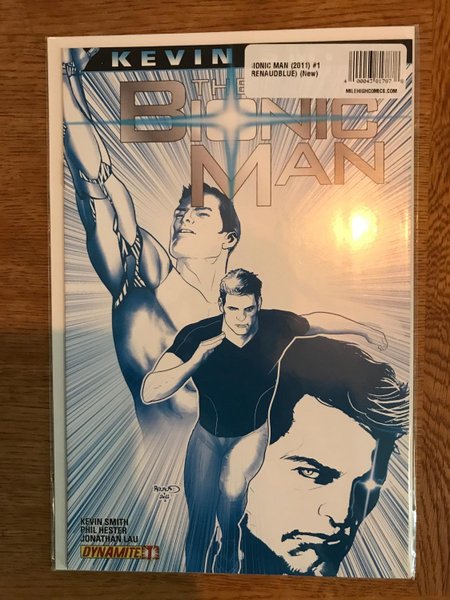 Limited 1 for 25 Bionic Blue Variant Cover by Paul Renaud (W) Kevin Smith, Phil Hester (A) Jonathan Lau Steve Austin is back and acclaimed film maker Kevin Smith unleashes his high octane vision in this new series from Dynamite. Featuring 28 pages of story/art in an action-packed first issue! Kevin Smith is joined by Phil Hester, artist Jonathan Lau, and cover artist/character designer Alex Ross (the team who brought you The MAIN Green Hornet series), Smith unleashes Bionic Man into the 21st century as only he can.