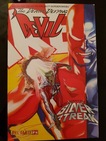 Cover by Alex Ross. by Alex Ross, Joe Casey & Edgar Salazar Issue #2 continues the adventure from Alex Ross, Joe Casey and Edgar Salazar as the spin-off from PROJECT SUPERPOWERS races through its first story arc! Featuring the Dynamite debut of the Silver Streak and a surprise appearance on the last page of another 'lost' ally of the 'Devil's in his quest to rid this new world of The Claw once more! Plus, more clues to the mysterious and shattering origin of the 'Dragon'!
