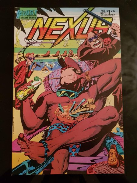 "Yo! Jimbo!" - Story by Mike Baron. Art by Eric Shanower. All Judah wants is a nice quiet vacation. Unfortunately, his reputation precedes him so it's never really going to work out that way. 20 pages. "Clonezones Unlimited." Story by Mike Baron. Art by Mark Nelson. Clonezone mistakenly sits in Dr. Sugarman's cloning chair. What could possibly go wrong? 8 pages. LOC from cartoonist Fred Hembeck. Cover by Steve Rude.