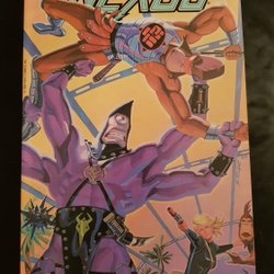 "Killing Joke" - Part 2 of 6. Story by Mike Baron. Pencils by Steve Rude. Inks by Eric Shanower. A thoroughly overmedicated Nexus watches Clonezone's latest comedy special. And you can too. Just be careful of the hammer. 20 pages. "The office of opportunity." Story by Mike Baron. Art by Mark Nelson. Clonezone begins his own series and celebrates by going on a date. Trust us, it does not end well. 8 pages. Cover by Steve Rude.