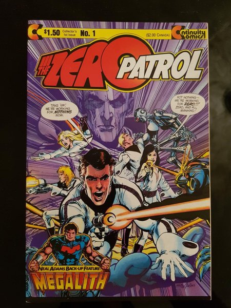 1st printing with $1.50 cover price. Cover by Neal Adams. Untitled story, script and art by Esteban Maroto and Neal Adams; Zero recruits five humans to help him save Earth, and later, to protect the Universe. Untitled story, script and art by Neal Adams; Megalith prevents a bank holdup in his home town.