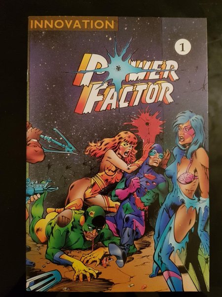 The Factor of One: The Power Factor article by David Campiti. Untitled story, script by Robert M. Ingersoll, art by Scott Clark and Mike Witherby; In a world where all superheros have either been destroyed or forced into hiding by the Criminal Underworld a few remaining heroes don the costumes of many different heroes to rally against the Underworld. A Factor of One, script by Kevin Juaire, art by Tom Lyle, Craig Brasfield, and Doug Hazlewood.