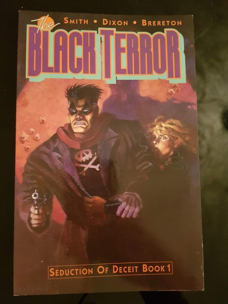 Seduction of Deceit: Book 1 - Written by Beau Smith and Chuck Dixon. Art and Cover by Dan Brereton. Starring The Black Terror, Watson, Butts and Frisbie.