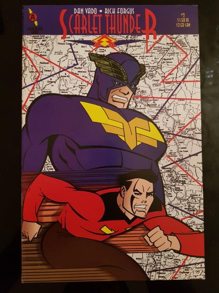 Story by Dan Vado. Art and cover by Rick Forgus. The adventures of two super-speed super-heroes during the WWII era. The race between the Red Bolt and the Blue Streak will determine which one of them can call themselves Scarlet Thunder.