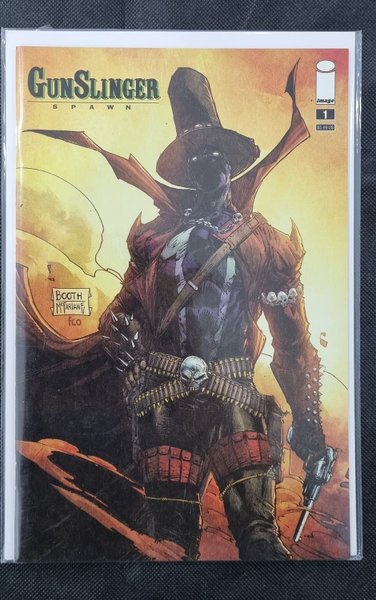 Cover by Brett Booth. Introducing the launch of the second new monthly title spinning out of the SPAWN UNIVERSE, with one of the most popular characters in the entire SPAWN mythology! This book contains three separate GUNSLINGER stories, each taking a look at his journey through time - from the wild, wild west to the 21st century. Will his 200-year-old past come back to haunt him as he navigates the strange world of 2021? Get ready for the past and present to collide in this new ongoing title! 48 pages, full color.